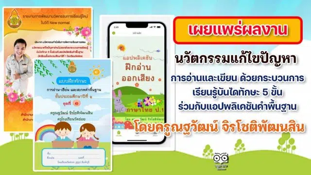 เผยแพร่ผลงานนวัตกรรม “นวัตกรรมแก้ไขปัญหาการอ่านและเขียน ด้วยกระบวนการ เรียนรู้บันไดทักษะ 5 ขั้น ร่วมกับแอปพลิเคชันคำพื้นฐาน นักเรียนชั้นประถมศึกษาปีที่ 1 โรงเรียนวัดข่อย ” แบบฝึกทักษะการอ่าน-เขียนและสะกดคำพื้นฐาน ป.1 ppt โดยครูณฐวัฒน์ จิรโชติพัฒนสิน โรงเรียนวัดข่อย