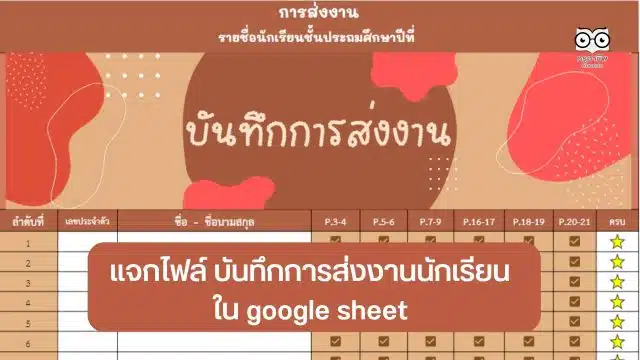 แจกไฟล์ บันทึกการส่งงานนักเรียน ใน google sheet พร้อมให้นักเรียนตรวจสอบออนไลน์ ได้ทันที ฟรี!!