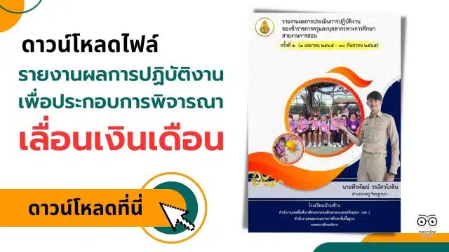 ดาวน์โหลดไฟล์ ตัวอย่างและแนวทางรายงานผลการปฏิบัติงานเพื่อประกอบการพิจารณาเลื่อนเงินเดือน สายครูผู้สอน เครดิตไฟล์ นายพีรพัฒน์ วรอัศวโภคิน
