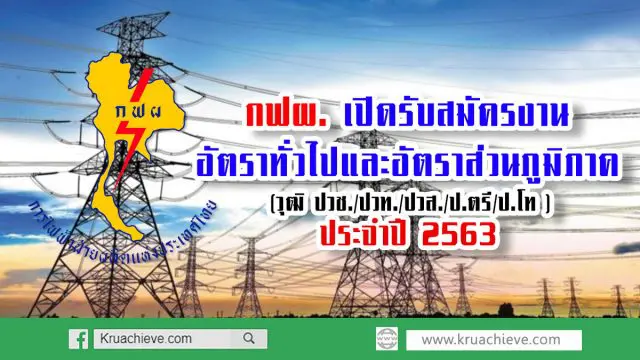 กฟผ. เปิดรับสมัครงาน อัตราทั่วไปและอัตราส่วนภูมิภาค (วุฒิ ปวช./ปวท./ปวส./ป.ตรี/ป.โท ) ประจำปี 2563