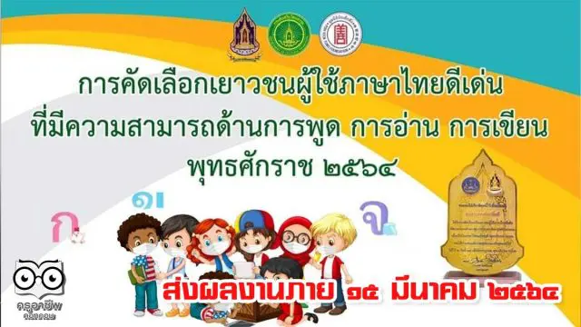 กรมส่งเสริมวัฒนธรรม รับสมัครคัดเลือกเยาวชนผู้ใช้ภาษาไทยดีเด่น ที่มีความสามารถด้านการพูด การอ่าน การเขียน พุทธศักราช ๒๕๖๔ ส่งผลงาน ๑๕ มีนาคม ๒๕๖๔