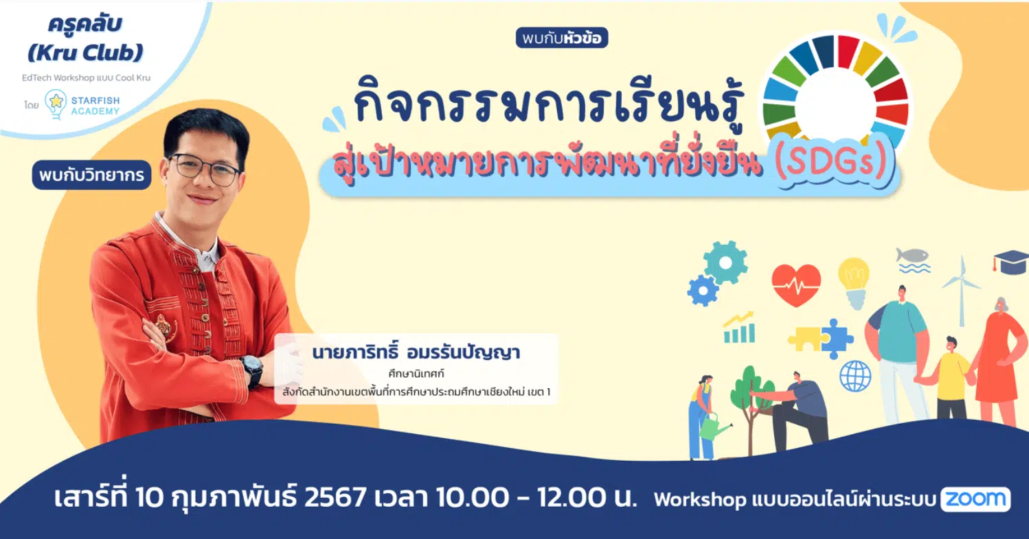 ขอเชิญร่วม Workshop ฟรี หัวข้อ กิจกรรมการเรียนรู้สู่เป้าหมายการพัฒนาที่ยั่งยืน (SDGs) วันเสาร์ที่ 10 ก.พ. 2567 พร้อมรับเกียรติบัตรฟรี