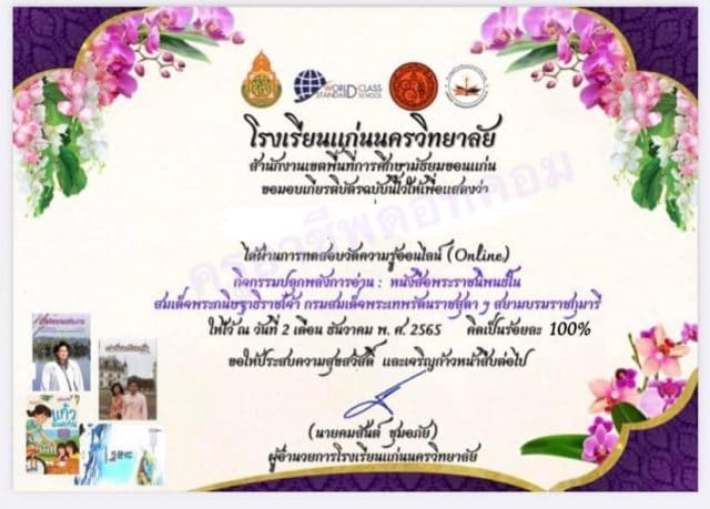 กิจกรรมตอบปัญหาออนไลน์ (Online) ปลุกพลังการอ่าน : แฟนพันธ์ุแท้หนังสือพระราชนิพนธ์ในสมเด็จพระกนิษฐาธิราชเจ้า กรมสมเด็จพระเทพรัตนราชสุดา ฯ สยามบรมราชกุมารี รับเกียรติบัตรทางอีเมล โดย ห้องสมุดโรงเรียนแก่นนครวิทยาลัย
