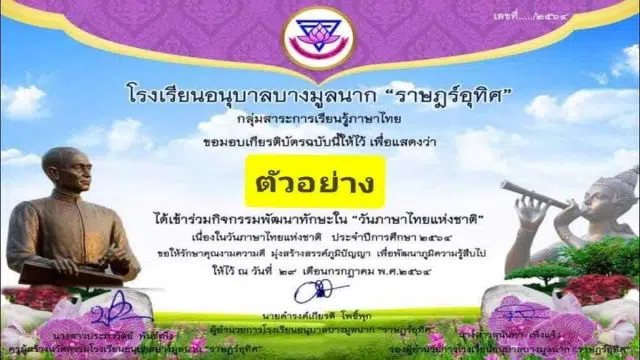 แบบทดสอบออนไลน์ หลักสูตร “กิจกรรมอนุรักษ์ภาษาไทย” เนื่องในวันภาษาไทยแห่งชาติ วันที่ ๒๙ กรกฎาคม ๒๕๖๔ โดยโรงเรียนอนุบาลบางมูลนาก”ราษฎร์อุทิศ”
