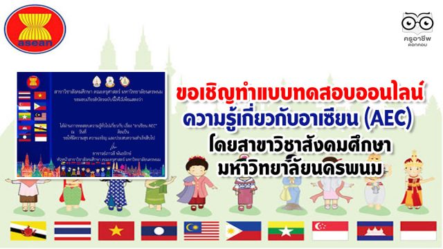 ขอเชิญทำแบบทดสอบความรู้เกี่ยวกับอาเซียน (AEC) โดยสาขาวิชาสังคมศึกษา มหาวิทยาลัยนครพนม