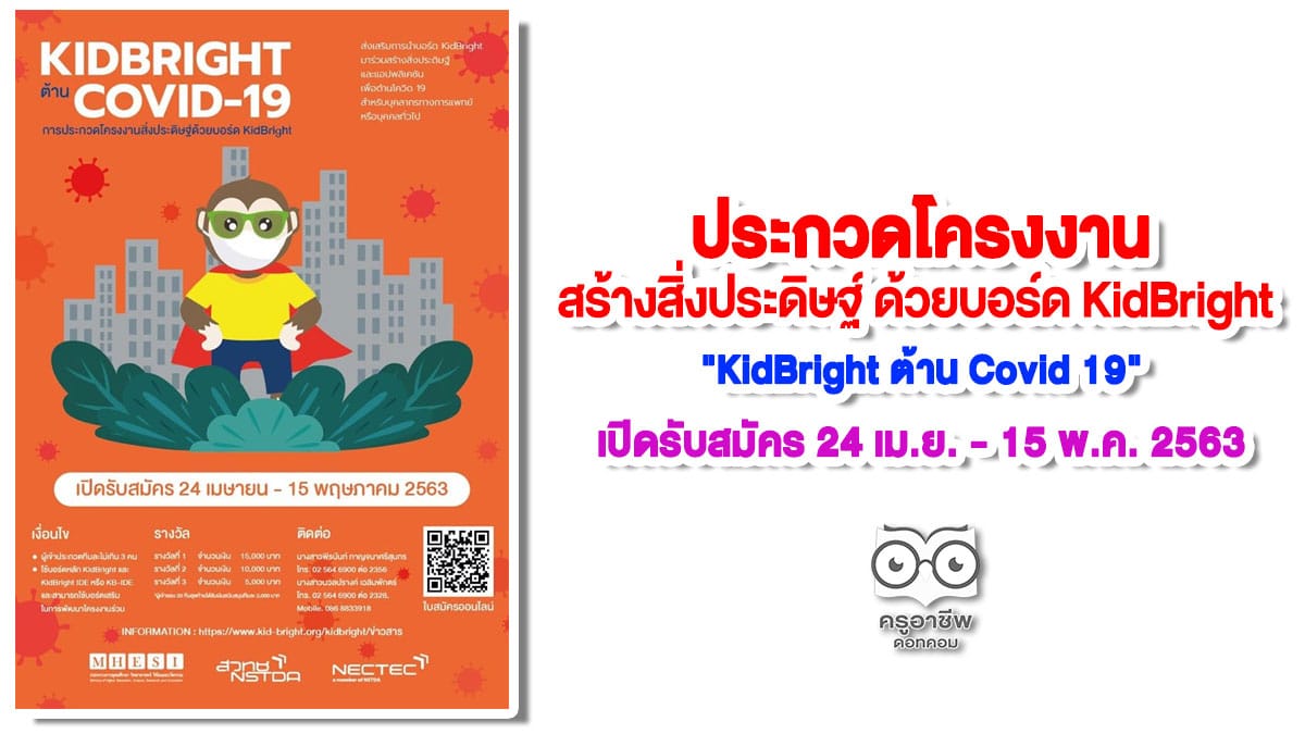 ขอเชิญประกวดโครงงานสร้างสิ่งประดิษฐ์ ด้วยบอร์ด KidBright ในโครงการ “KidBright ต้าน Covid 19” เปิดรับสมัคร 24 เมษายน – 15 พฤษภาคม 2563 ส่งเสริมการนำบอร์ด KidBright มาร่วมสร้างสิ่งประดิษฐ์และแอปพลิเคชัน เพื่อต้าน Covid-19 สำหรับบุคลากรทางการแพทย์หรือบุคคลทั่วไป