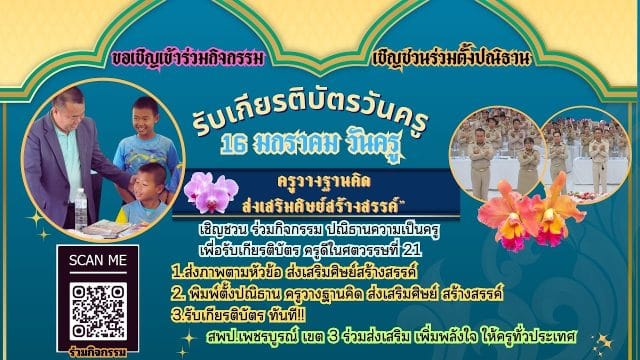 ขอเชิญร่วมกิจกรรมตั้งปณิธานวันครู ปี 2567 รับเกียรติบัตรครูดีในศตวรรษที่ 21 โดย สพป.เพชรบูรณ์ เขต 3