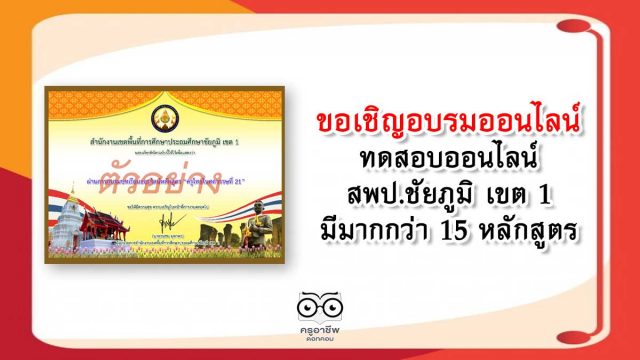 ขอเชิญอบรมออนไลน์ ทดสอบออนไลน์ สพป.ชัยภูมิ เขต 1 มีมากกว่า 15 หลักสูตร