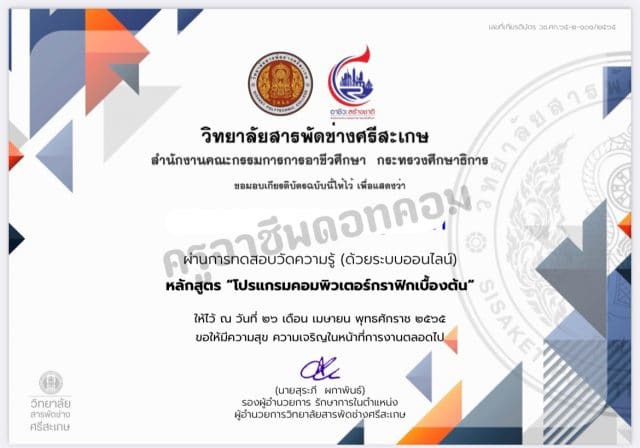 ครูอาชีพดอทคอม ขอแนะนำหลักสูตรออนไลน์ดี ๆ จากแผนกวิชาคอมพิวเตอร์ธุรกิจ วิทยาลัยสารพัดช่างศรีสะเกษ โดยเป็นหลักสูตรระยะสั้น เรียนจบรับเกียรติบัตรทันที