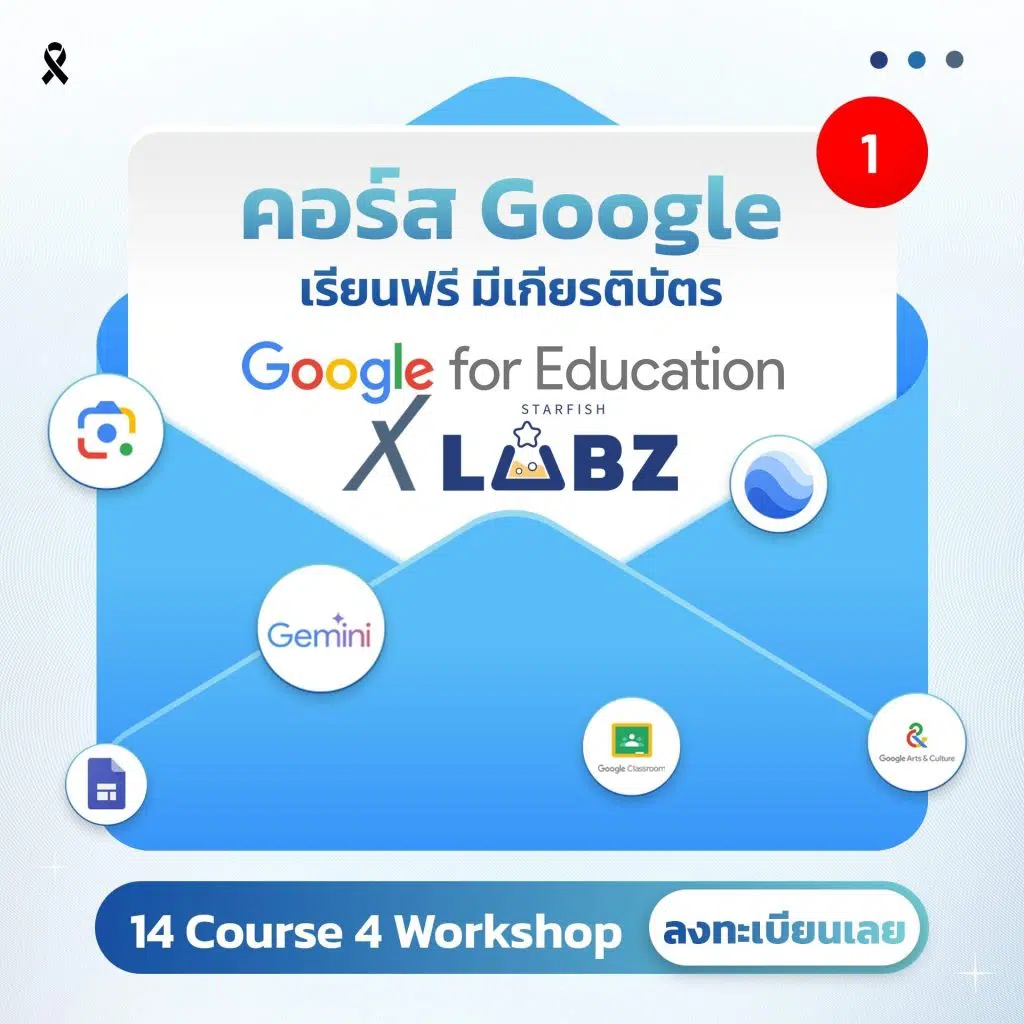 คอร์ส Google 14 หลักสูตร เรียนฟรี มีเกียรติบัตรGoogle for Education x Starfish Labz รับเกียรติบัตรฟรี