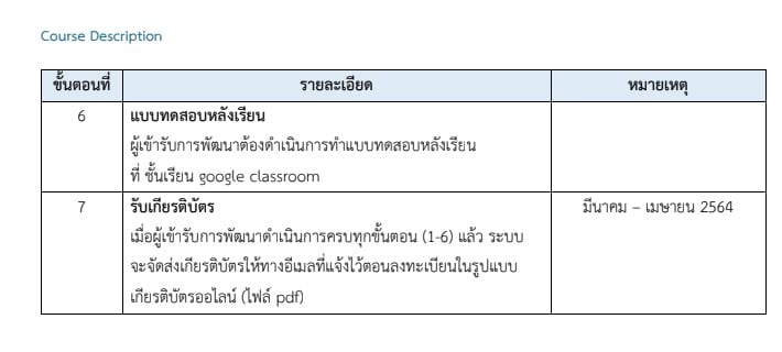 ขั้นตอนการเข้ารับการพัฒนาในหลักสูตร