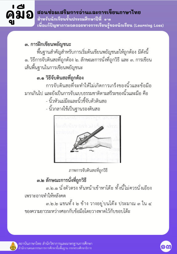 เล่ม ๑ คู่มือการซ่อมเสริมการอ่านและการเขียนภาษาไทยสำหรับนักเรียนชั้นประถมศึกษาปีที่ ๑-๓ เพื่อแก้ปัญหาภาวะถตถอยทางการเรียนรู้ของผู้เรียน (Learning Loss)