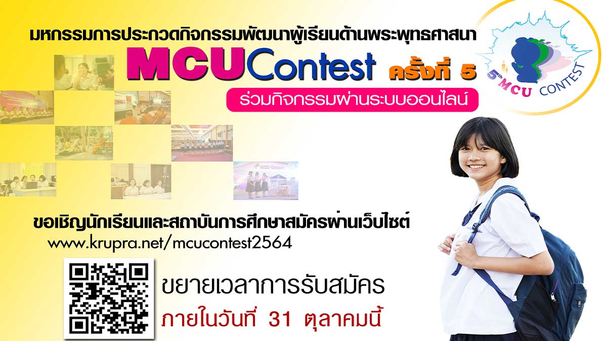 ขอเชิญชวนเข้าร่วม “งานมหกรรมส่งเสริมศีลธรรมและการประกวดกิจกรรมพัฒนาผู้เรียนด้านพระพุทธศาสนา ปีที่ 5 (5th MCU Contest)” โดยกิจกรรมการประกวด ประกอบด้วย