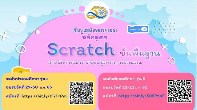 ขอเชิญสมัครอบรมหลักสูตร “Scratch ขั้นพื้นฐาน สำหรับการจัดการเรียนรู้วิทยาการคำนวณ”