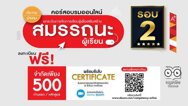 กระแสดีไม่มีตก จนต้องเพิ่มรอบ 2!!คอร์สอบรมออนไลน์ สุดร้อนแรง ที่ครูทั่วประเทศปักหมุดรอ รีบบอกต่อ โครงการ “ยกระดับการเรียนรู้ เพื่อเสริมสร้างสมรรถนะผู้เรียน“ จากอักษรเจิญทัศน์ 5 กลุ่มสาระฯ 6 วิชา ทั้งระดับประถมศึกษา และมัธยมศึกษา
