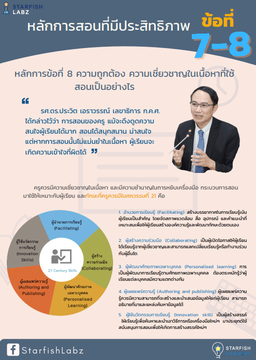 - วิธีประเมินหลังการสอน เรียนรู้หลักสำคัญในการสอนที่มีประสิทธิภาพใช้เป็นเกณฑ์ในการประเมินคลิปการสอนของครู ในหัวข้อ 7-8