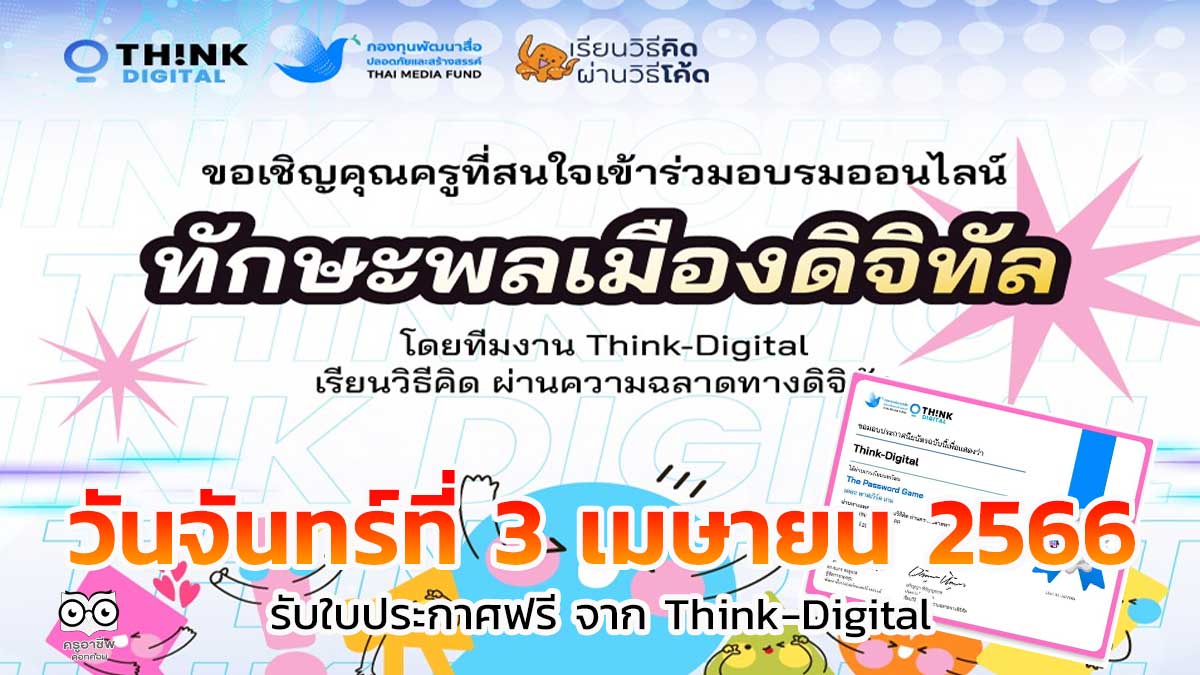 อบรมออนไลน์ฟรี ในหัวข้อ ทักษะพลเมืองดิจิทัล วันจันทร์ที่ 3 เมษายน 2566 พร้อมรับใบประกาศจาก Think-Digital