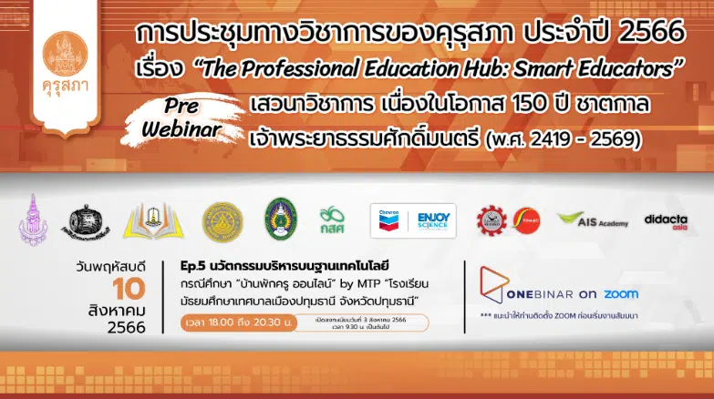 ประชุมทางวิชาการออนไลน์ของคุรุสภา ประจำปี 2566 เรื่อง “The Professional Education Hub: Smart Educators” เสวนาวิชาการ เนื่องในโอกาส 150 ปี ชาตกาล