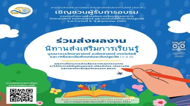 สสวท. ขอเชิญชวนคุณปฐมวัย ส่งผลงานนิทานส่งเสริมการเรียนรู้บูรณาการวิทยาศาสตร์ คณิตศาสตร์ และเทคโนโลยีในระดับปฐมวัย (3-6 ปี) ภายในวันที่ 9 มิถุนายน 2565