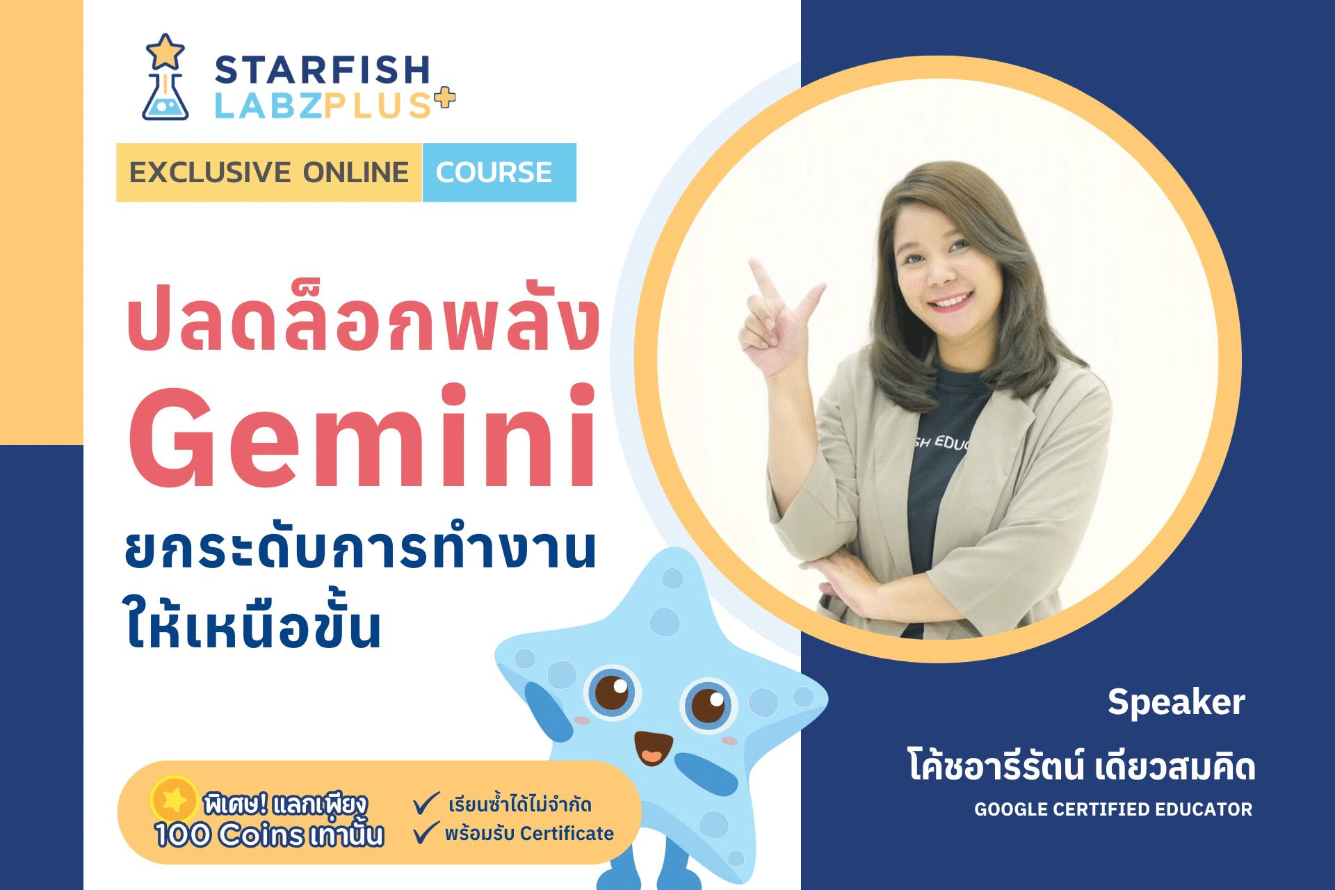 เรียนออนไลน์ หลักสูตร ปลดล็อกพลัง Gemini ยกระดับการทำงานให้เหนือขั้น! รับเกียรติบัตรทันที จาก Starfish Labz