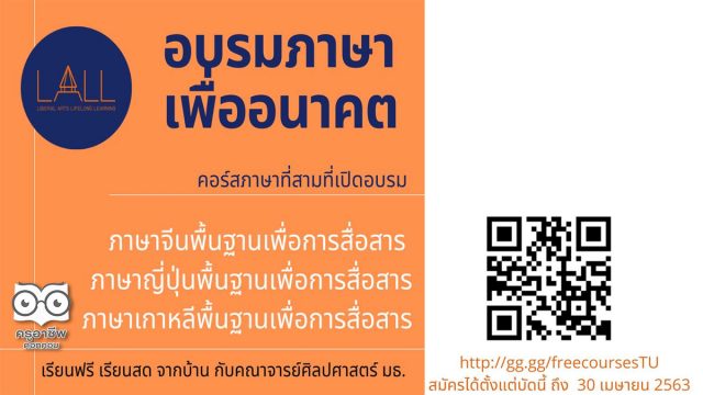 มหาวิทยาลัยธรรมศาสตร์ เปิดคอร์สอบรมฟรี “ภาษาเพื่ออนาคต” สมัครถึง 30 เมษายน 2563