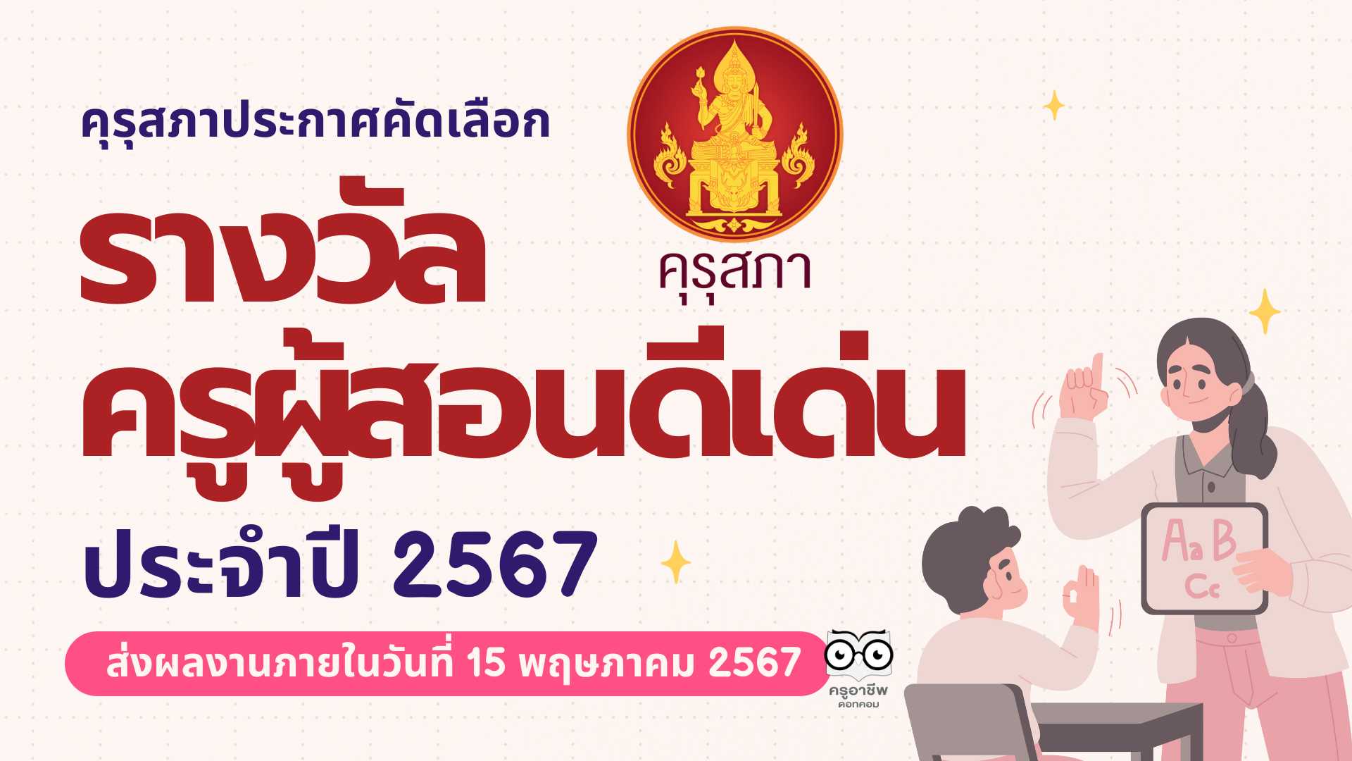 คุรุสภาประกาศคัดเลือกรางวัลครูผู้สอนดีเด่น ประจำปี 2567 ส่งผลงานภายใน ภายในวันที่ 15 พฤษภาคม 2567