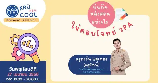 ลงทะเบียนอบรมฟรี บันทึกหลังสอนอย่างไรให้ตอบโจทย์ วPA วันที่ 27 เม.ย.2566 โดยครูตะวัน แสงทอง ครูโทนี่