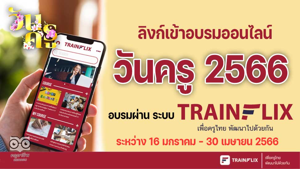 บทความนี้ครูอาชีพดอทคอม ขอแนะนำ ลิงก์เข้าอบรม ขั้นตอนการเข้าอบรมออนไลน์ วันครู 2566 อบรมผ่าน ระบบ trainflix หลักสูตรออนไลน์เพื่อเพิ่มพูนสมรรถนะวิชาชีพทางการศึกษา รับเกียรติบัตรโดย คุรุสภา
