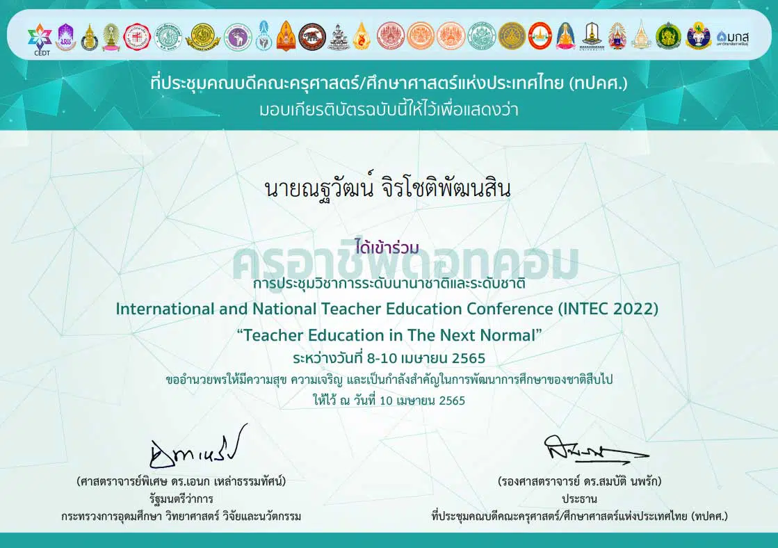 บทความนี้ ครูอาชีพดอทคอม ขอนำเสนองานประชุมทางวิชาการ เข้าร่วมฟรี จัดโดยที่ประชุมคณบดีคณะครุศาสตร์/ศึกษาศาสตร์แห่งประเทศไทย (ทปคศ.) จัดประชุมวิชาการระดับนานาชาติ และระดับชาติ INTEC 2022 Teacher Education In the Next Normal EDUCA สำหรับผู้ลงทะเบียนร่วมอบรมและไม่ต้องการนำเสนอผลงาน ไม่มีค่าใช้จ่ายในการร่วมงาน