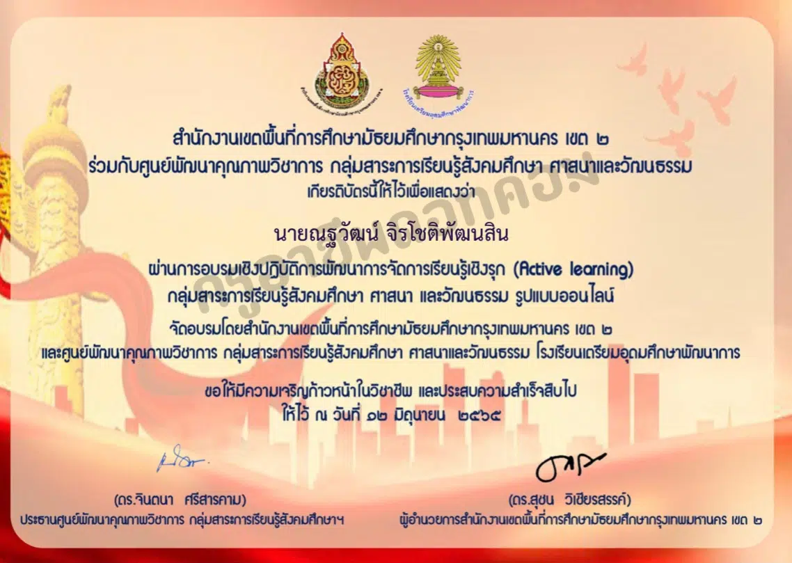 ลิงก์แบบประเมิน รับเกียรติบัตร การอบรมเชิงปฏิบัติการ การพัฒนาการจัดการเรียนรู้เชิงรุก (Active Learning) 12 มิถุนายน 2565 โดย สพม.กท.2