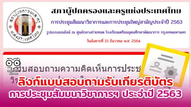 ลิงก์แบบสอบถาม การประชุมสัมมนาวิชาการและประชุมใหญ่สามัญประจำปี 2563 สภาผู้ปกครองและครูแห่งประเทศไทย รับเกียรติบัตร (เปิดเวลา 14.00-17.00 น.)