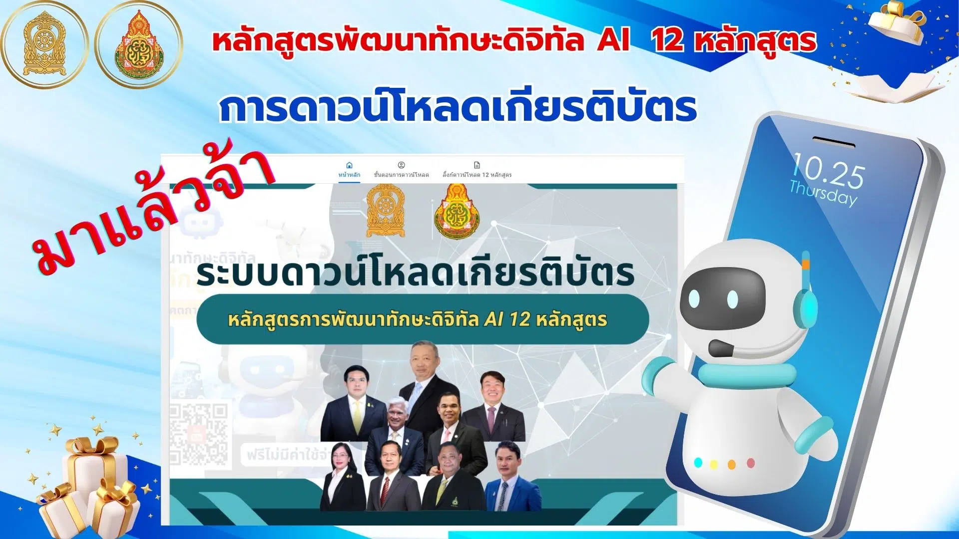 ลิงค์ระบบดาวน์โหลด เกียรติบัตรและวุฒิบัตร หลักสูตร Webinar AI 12 หลักสูตร ของกระทรวงศึกษาธิการ
