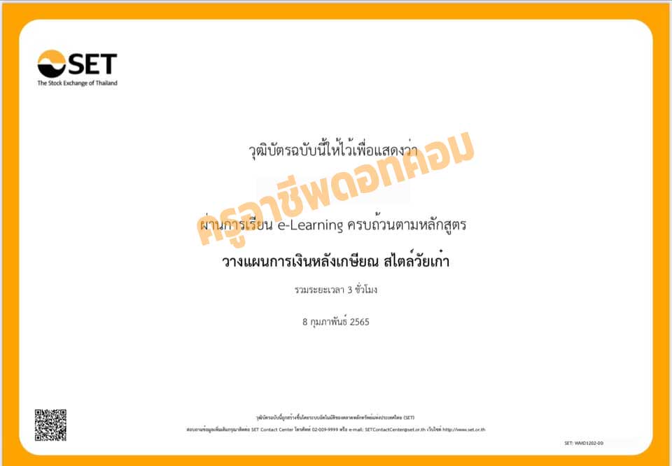 อบรมออนไลน์ ฟรี!! หลักสูตร วางแผนการเงินหลังเกษียณ สไตล์วัยเก๋า รหัส 64111 โดย SET e-Learning พร้อมรับเกียรติบัตรฟรี (นับชั่วโมงได้)