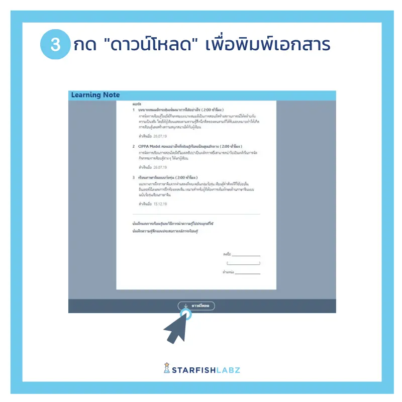 วิธีดาวน์โหลดบันทึก PLC การเข้าเรียนคอร์สกับ Starfish Labz เพื่อประกอบการเลื่อนวิทยฐานะ ว21 นับเป็นชั่วโมงพัฒนาตนเองในส่วนของ PLC-50 ชั่วโมงต่อปี