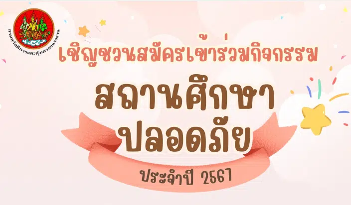 ขอเชิญร่วมกิจกรรมสถานศึกษาปลอดภัย ประจำปี 2567 ส่งเอกสารใบสมัคร 20 กุมภาพันธ์ – 20 พฤษภาคม 2567