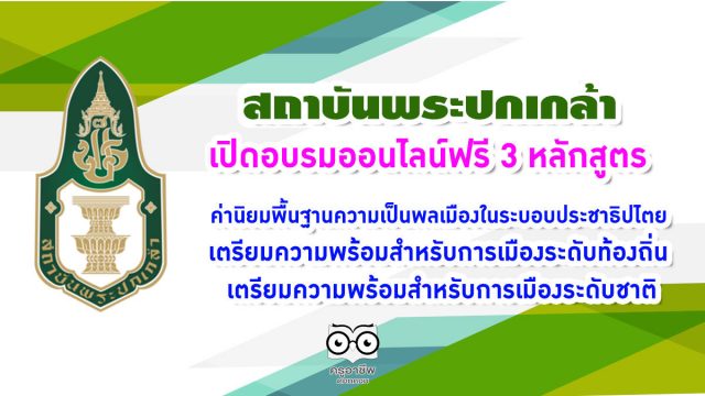 สถาบันพระปกเกล้า เปิดอบรมออนไลน์ฟรี 3 หลักสูตร ผ่านการอบรม รับเกียรติบัตรทันที