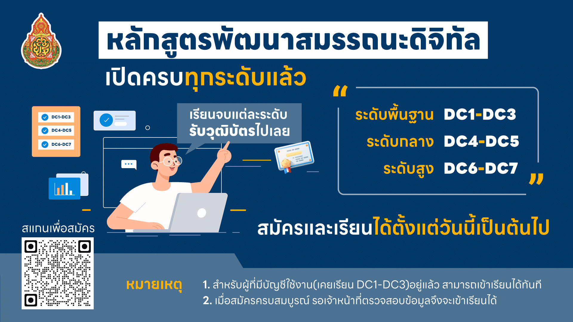 เปิดแล้ว ลิงก์สมัครอบรมโครงการพัฒนาสมรรถนะดิจิทัล ระดับกลาง DC4-DC7 ปี 2566 สำหรับครูสังกัด สพฐ.