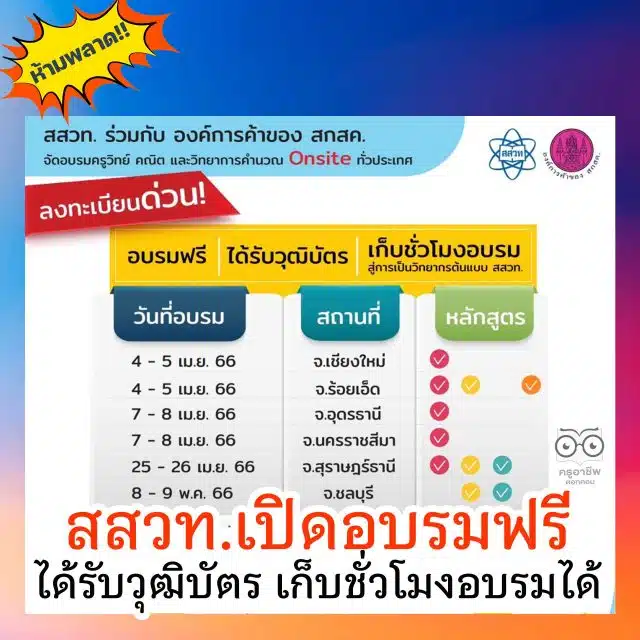 สสวท. ร่วมกับองค์การค้าของ สกสค. จัดอบรมครูวิทย์-คณิต-วิทยาการคำนวณ อบรมฟรี ได้รับวุฒิบัตร เก็บชั่วโมงอบรมได้