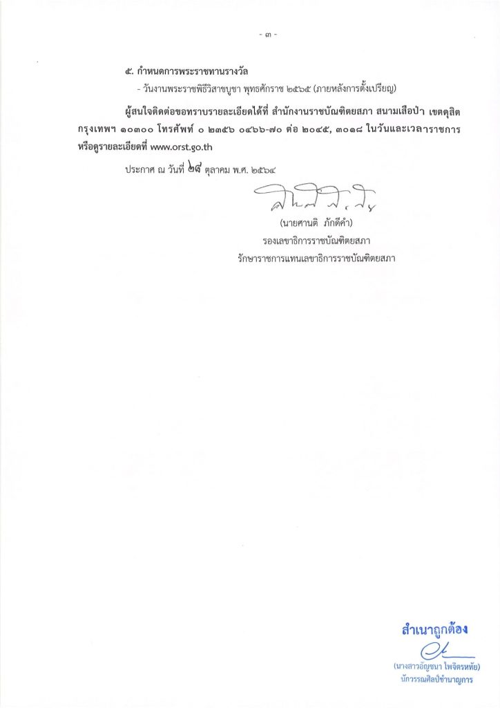 ผู้สนใจติดต่อขอทราบรายละเอียดได้ที่ สำนักงานราชบัณฑิตยสภา สนามเสือป่า เขตดุสิต กรุงเทพฯ ๑๐๓๐๐ โทรศัพท์ ๐ ๒๓๕๖ ๐๔๖๖-๗๐ ต่อ ๒๐๔๕, ๓๐๑๘ ในวันและเวลาราชการ หรือดูรายละเอียดที่ www.orst.go.th