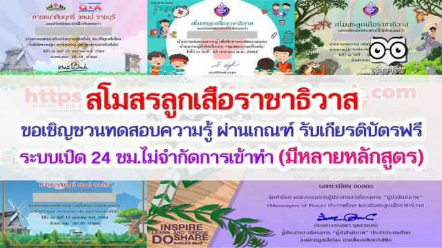 สโมสรลูกเสือราชาธิวาส ขอเชิญชวนทดสอบความรู้ เพื่อศึกษาเเละพัฒนาตนเอง ผ่านเกณฑ์ รับเกียรติบัตรฟรี ระบบเปิด 24 ชม.ไม่จำกัดการเข้าทำ (มีหลายหลักสูตร)