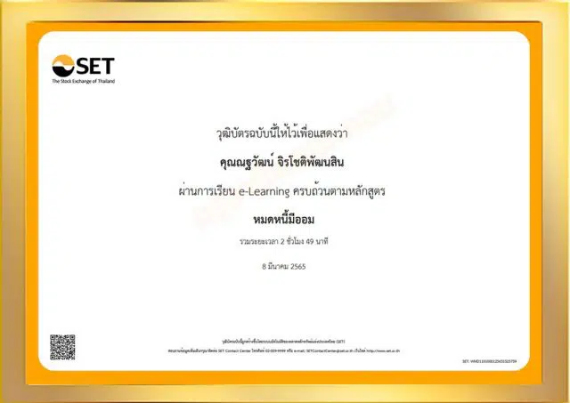 อบรมออนไลน์ฟรี!! หลักสูตร หมดหนี้มีออม โดย SET e-Learning นับชั่วโมงอบรมได้ เพื่อเลื่อนวิทยฐานะ ตามหลักเกณฑ์ที่ ก.ค.ศ. กำหนด