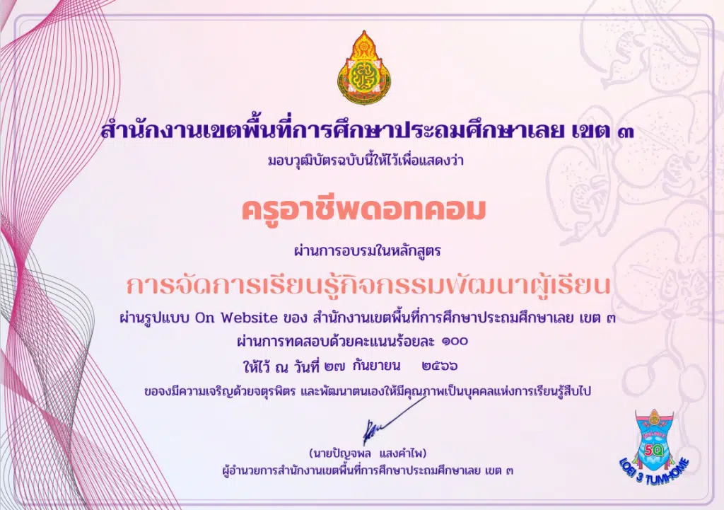 อบรมออนไลน์ หลักสูตรอบรมกิจกรรมพัฒนาผู้เรียน ผ่านเกณฑ์ 80% รับเกียรติบัตรทันที โดย สพป.เลย เขต 3