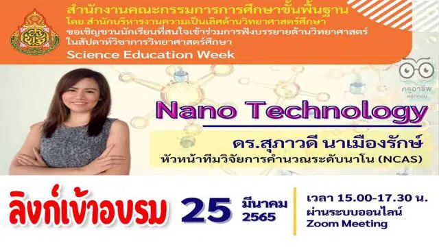 เปิดสมัครอบรมออนไลน์เพิ่มเติม หลักสูตร 2 Nano Technology โดย ดร.สุภาวดี นาเมืองรักษ์ โครงการสัปดาห์วิชาการวิทยาศาสตร์ศึกษา ปิดลงทะเบียนวันที่ 25 มีนาคม 2565 เวลา 20.00 น.