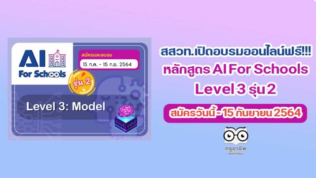 สสวท.เปิดอบรมออนไลน์ฟรี!!! หลักสูตร AI For Schools Level 3 รุ่น 2 สมัครวันนี้ – 15 กันยายน 2564