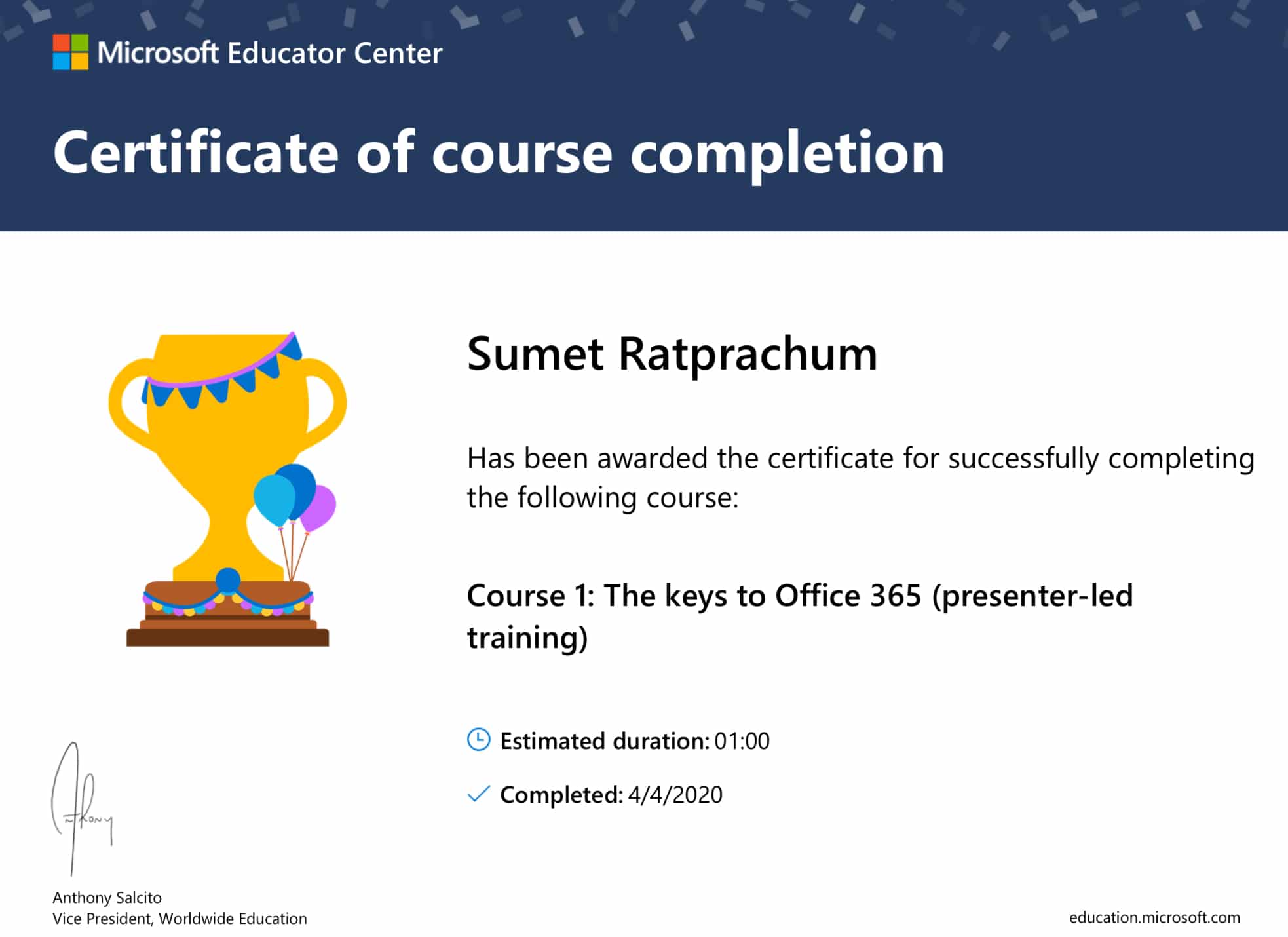วันนี้ครูอาชีพดอทคอม นำเว็บไซต์ในการอบรมออนไลน์ของไมโครซอฟท์ (Microsoft) มาฝากกันครับ ซึ่งมีคอร์สในการอบรมออนไลน์ฟรีสำหรับคุณครูกว่า 20 หลักสูตรให้เข้าไปอบรมและสามารถพิมพ์เกียรติบัตรเก๋ๆ ไปอวดเพื่อนๆกันได้เลย
