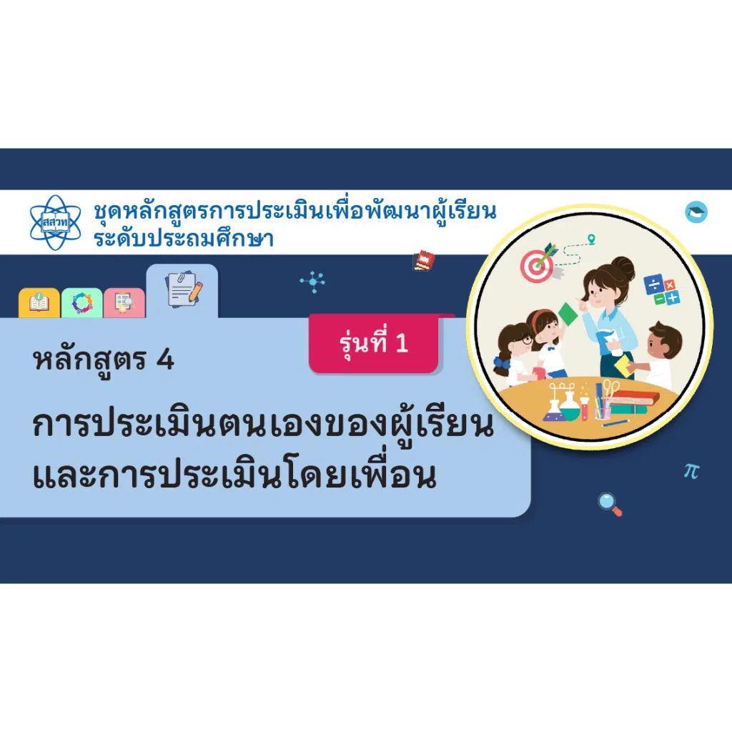 หลักสูตรนี้เป็นส่วนหนึ่งของชุดหลักสูตรอบรมครูออนไลน์การประเมินเพื่อพัฒนาผู้เรียน สำหรับครูผู้สอนวิชาวิทยาศาสตร์และคณิตศาสตร์ ระดับประถมศึกษา ซึ่งเนื้อหาในหลักสูตรนี้เกี่ยวข้องกับวิธีการค้นหาหลักฐานร่องรอยการเรียนรู้จากการประเมินตนเองของผู้เรียนและการประเมินโดยเพื่อน รวมถึงแนวทางในการนำการประเมินตนเองของผู้เรียนและการประเมินโดยเพื่อนไปใช้ในชั้นเรียน เพื่อให้ผู้เข้ารับการอบรมสามารถนำไปปรับใช้ในการจัดการเรียนรู้วิชาวิทยาศาสตร์และคณิตศาสตร์ในสถานศึกษาต่อไป