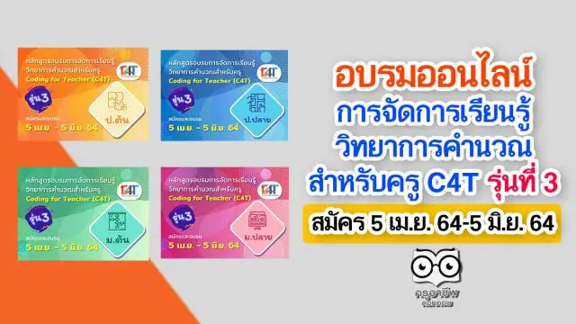 สสวท.เปิดอบรมออนไลน์ การจัดการเรียนรู้วิทยาการคำนวณสำหรับครู C4T รุ่นที่ 3 สมัคร 5 เมษายน 2564-5 มิถุนายน 2564 จำนวน 4 หลักสูตร