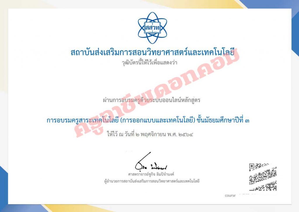 สสวท.เปิดอบรมออนไลน์ การอบรมครูการออกแบบและเทคโนโลยี ม.3 รุ่นที่ 1 สมัครและอบรมถึง 23 พฤศจิกายน 2564