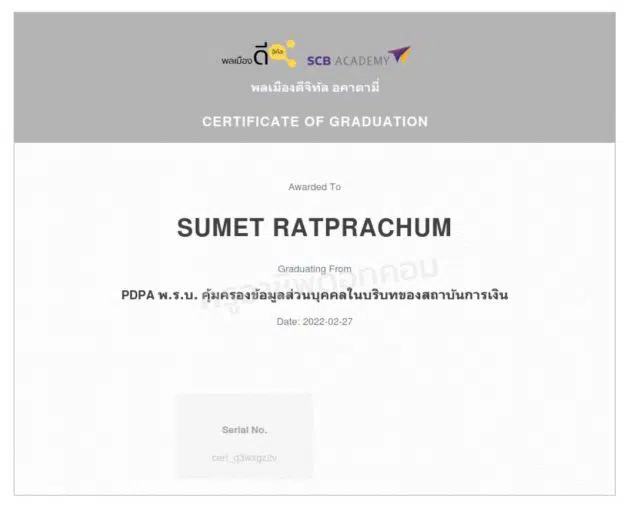 อบรมออนไลน์ หลักสูตร PDPA พ.ร.บ. คุ้มครองข้อมูลส่วนบุคคลในบริบทของสถาบันการเงิน รับเกียรติบัตรฟรี โดยพลเมืองดีจิทัล อคาดามี่ และ SCB Academe