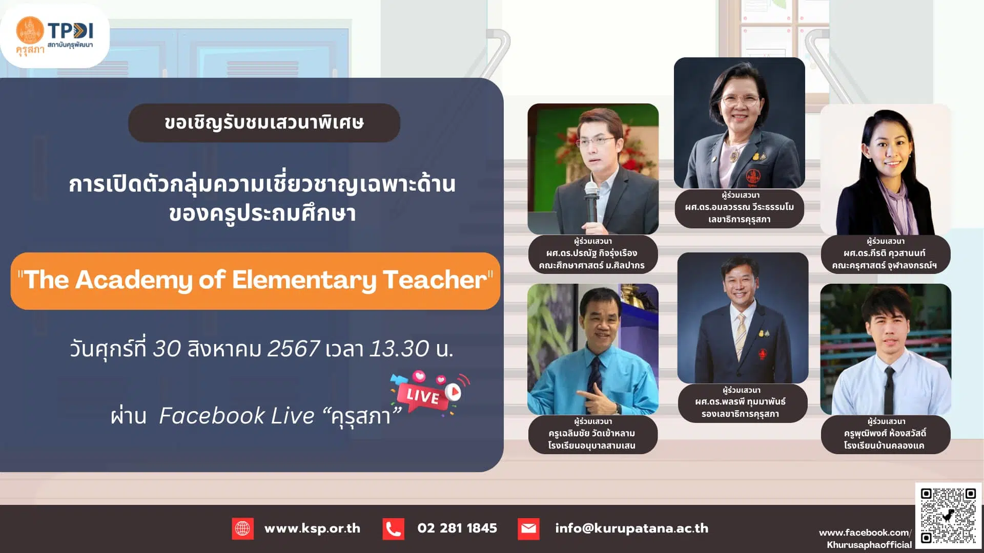 📌 ขอเชิญรับชมเสวนาพิเศษ “การเปิดตัวกลุ่มความเชี่ยวชาญเฉพาะด้าน ของครูประถมศึกษา The Academy of Elementary Teacher”